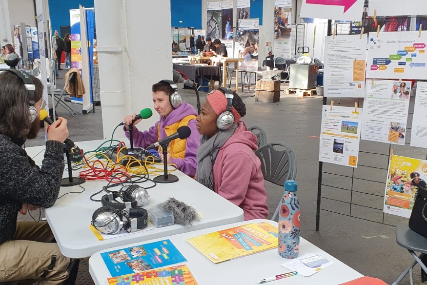 Dans le cadre d’une formation professionnelle (CPJEPS) qui se déroule à Dole dans Jura, une équipe d'animatrices et d'animateurs a découvert le matériel d'enregistrement audio pour "couvrir" un évènement local. En effet, le 19 février 2025, ils se sont rendus sur le Festival de la formation pour réaliser des prises de son. Un micro-trottoir pour interroger les visiteurs du festival, des interviews des exposant es, un plateau d'enregistrement pour échanger sur les métiers de l'animation. L'occasion pour chaque stagiaire d’aller vers les gens, de poser des questions, d’utiliser du matériel......